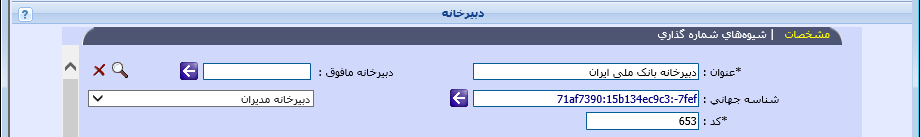 پس از ثبت كامل اطلاعات مربوط به شيوه شمارهگذاري، اين شناسه توسط سيستم بهطور خودكار توليد و در اين قسمت درج ميشود.
