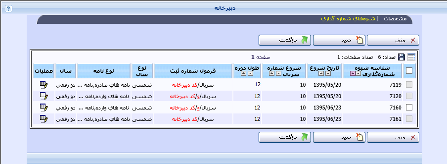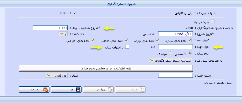 نكته: با سپري شدن طول دوره، اگر شيوه شماره گذاري جديدي تعريف نشود، همان شيوه براي يك طول دوره ديگر فعال خواهد بود.