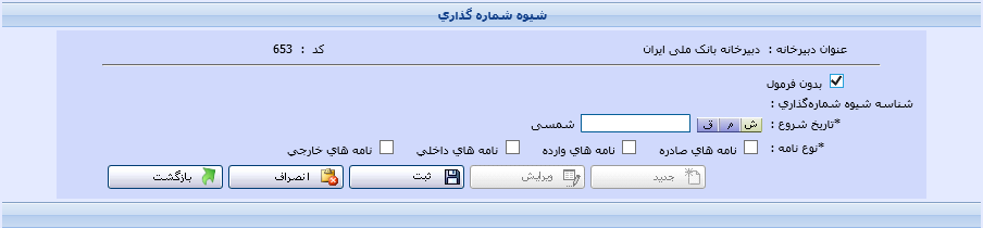 در پايان روي دگمه ثبت كليك كنيد. سيستم شناسه شيوه شماره گذاري را درج و پيام موفقيت را اعلام ميدارد